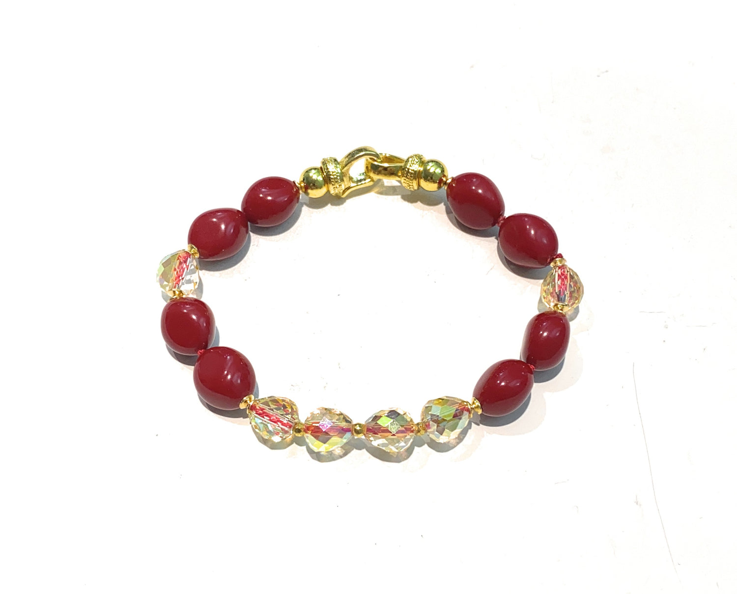 Bracciale con Pasta di Corallo e Cristalli Gold