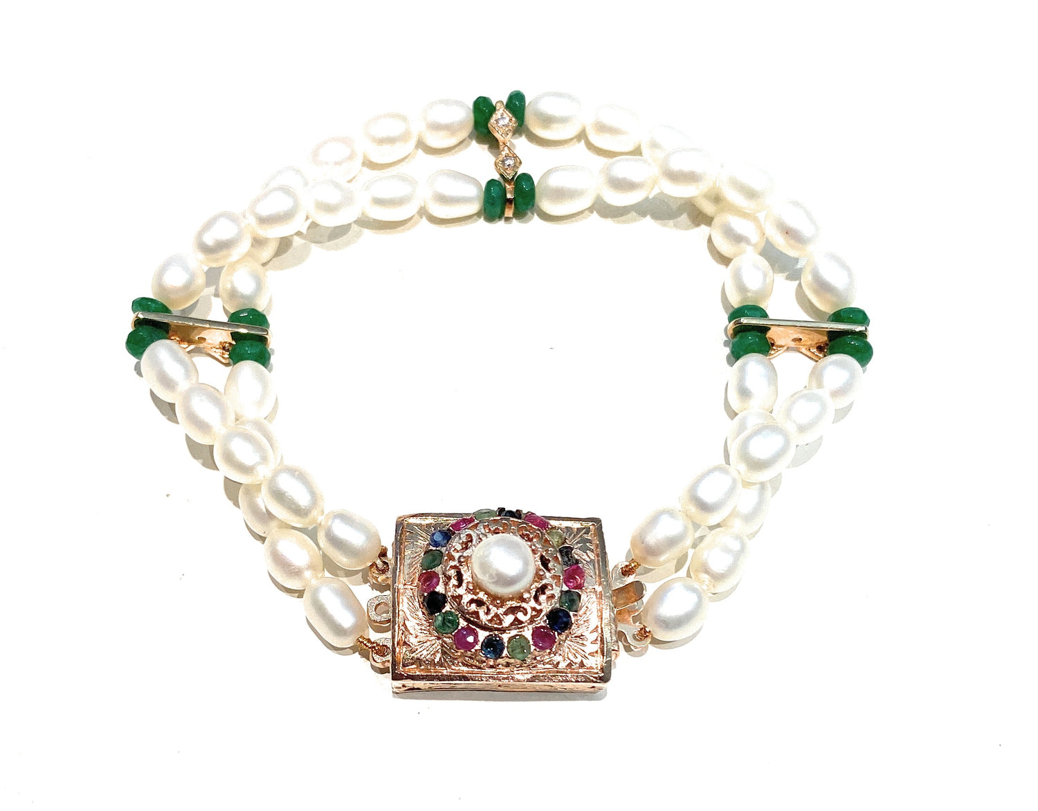 Bracciale diWa Jewels Perle 2 fili con Chiusura Retró Argento Sterling Rosé Pietre Colorate