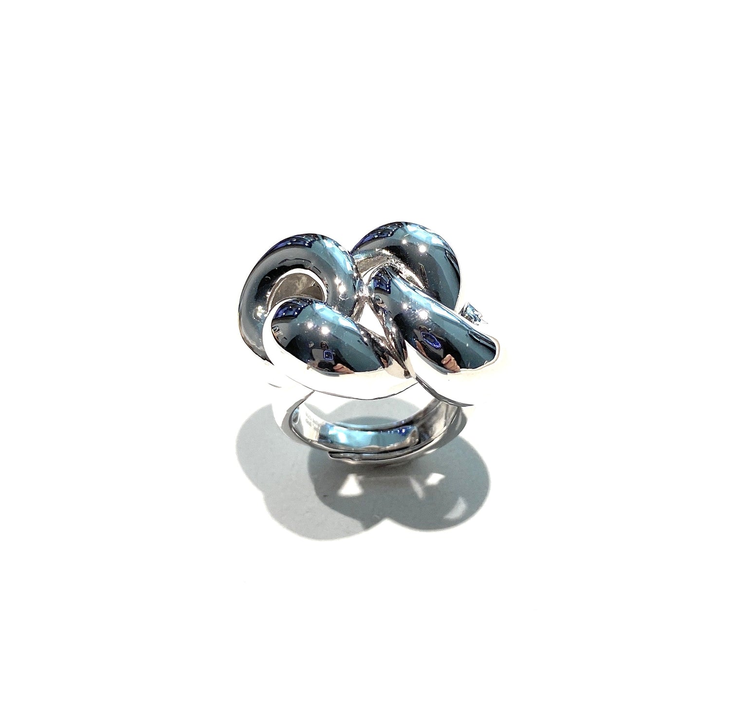 Un gioiello dal design forte e simbolico. Questo anello in argento 925 massiccio (17 grammi) rappresenta un nodo, simbolo di legame, continuità e forza interiore. La finitura in rodio bianco dona brillantezza e protegge l’argento dall’ossidazione. La misura 13 regolabile lo rende perfetto per diverse dita, adattandosi con comfort e stile.