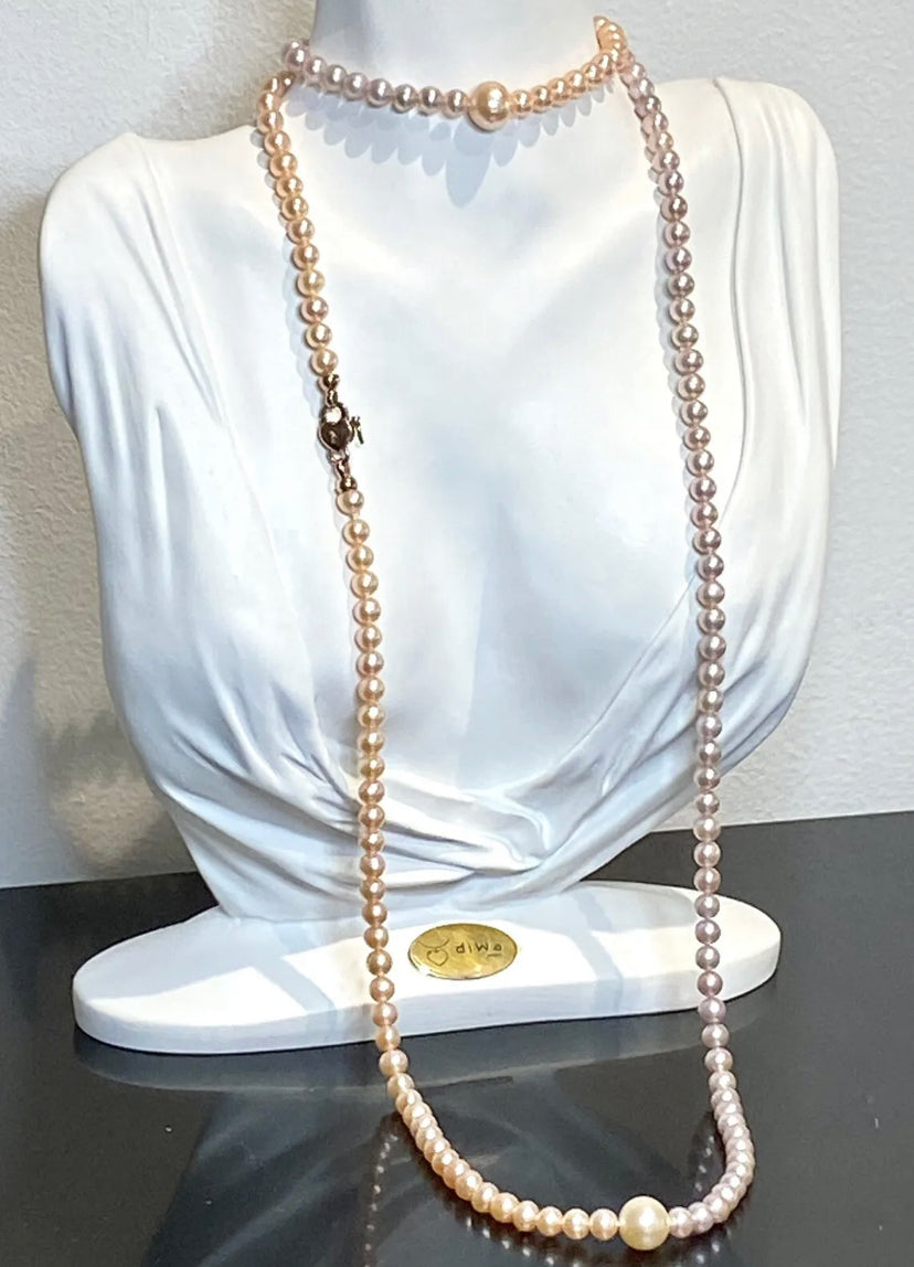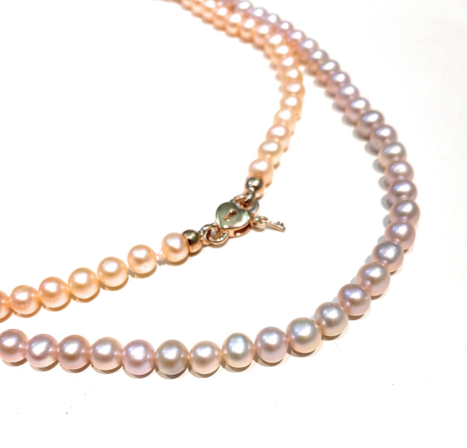 Collana diWa Jewels Lunga Perle Freshwater Rosate a Gradazione Chiusura Lucchetto e Chiave argento sterling placcato oro rosé