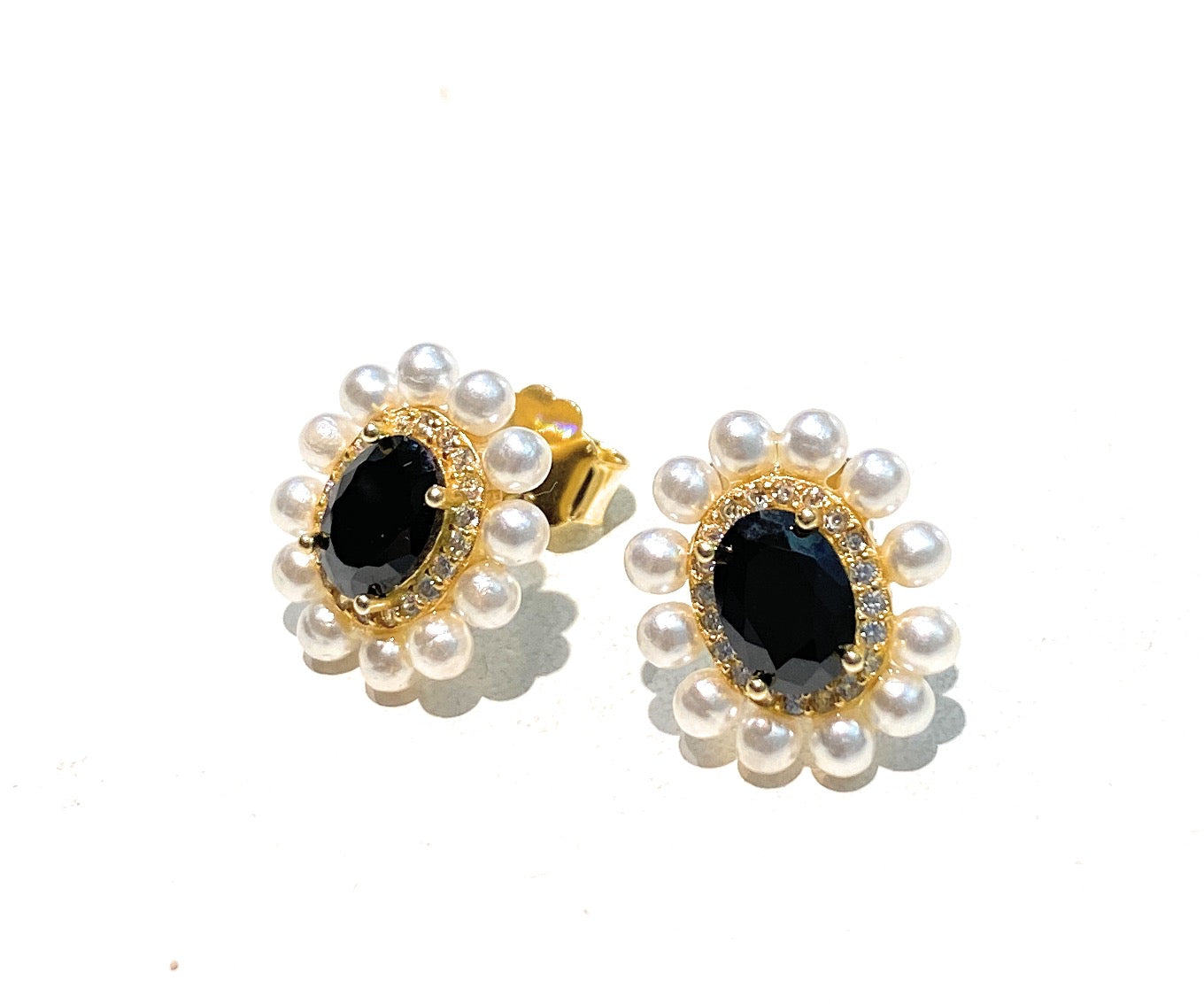 Orecchini a lobo Margherita Perline e Zircone centrale sfaccettato galvanica gialla Farfallina