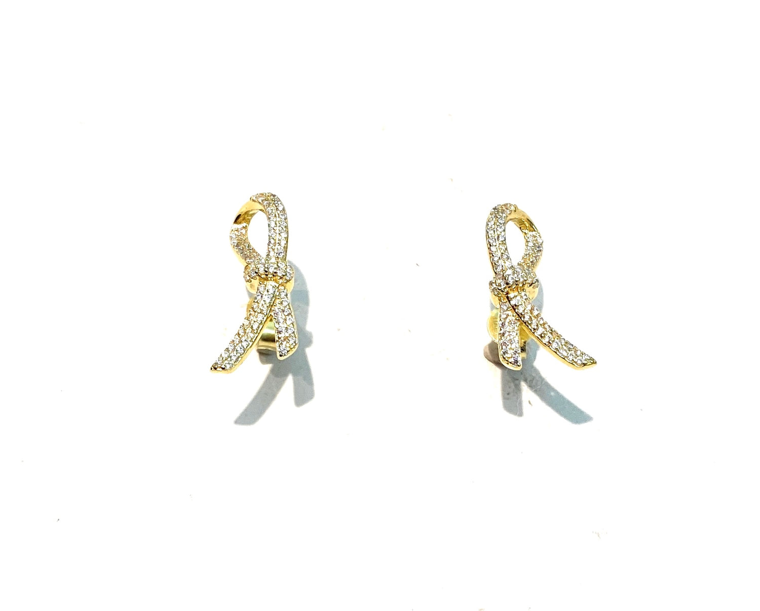 🎀 Orecchini Fiocco in Argento 925 Placcato Oro Giallo con Zirconi – Eleganti e Raffinati – diWa Jewels